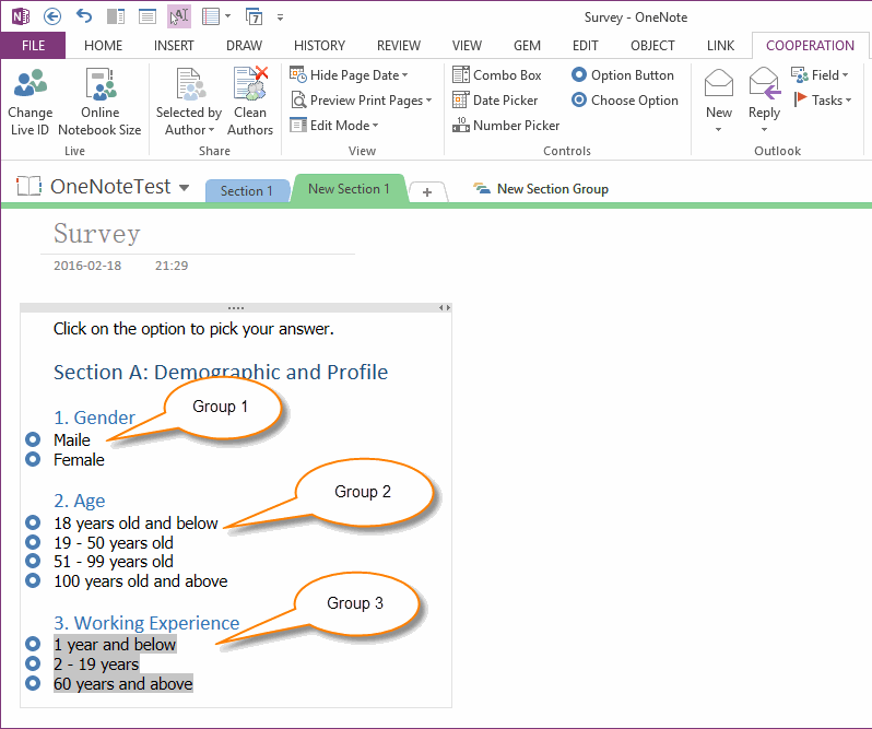 Using Content Control - Radio ( Option ) Button Group in OneNote