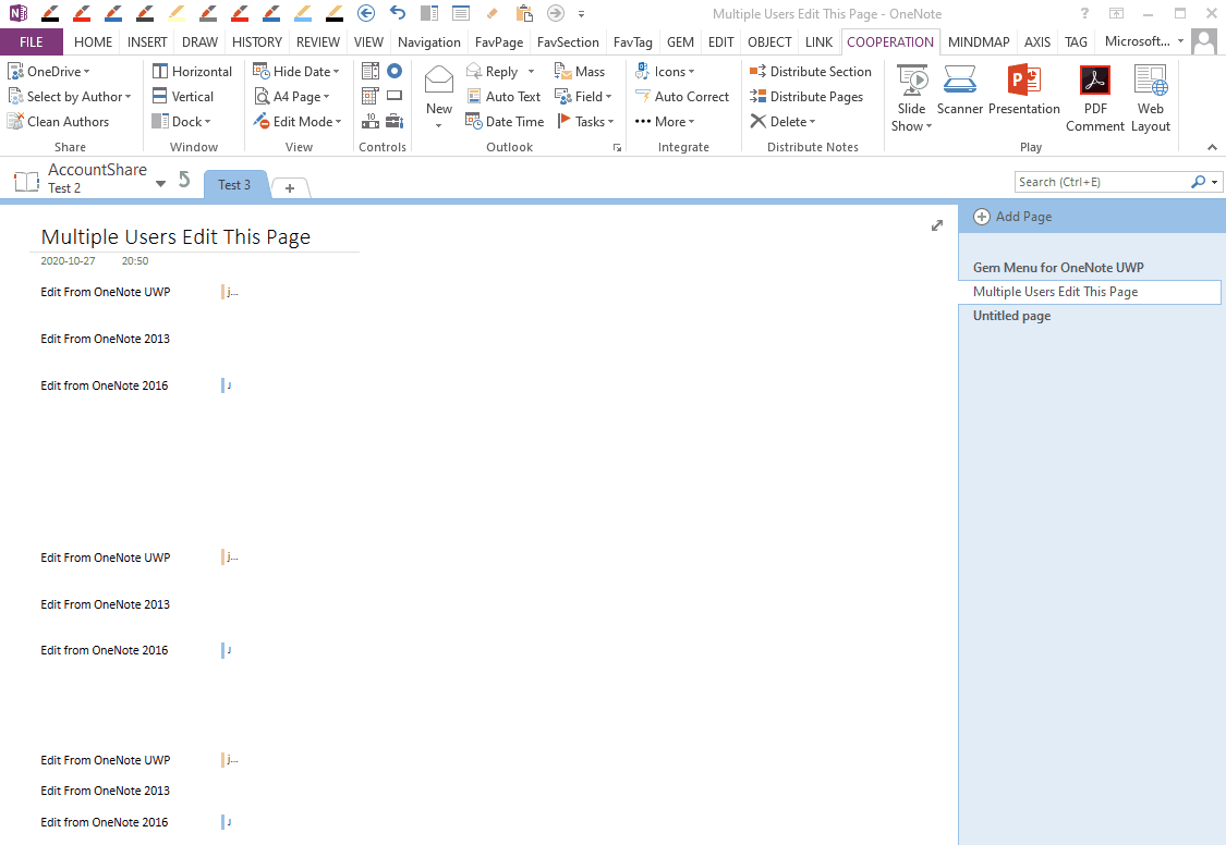 Drop down the “Select by Author” menu, it lists all user names that have edited the current OneNote page in menu items.