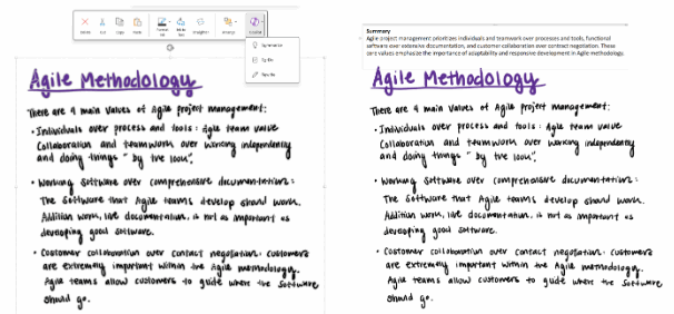 - Prompt Copilot to summarize your inked notes in preparation for a meeting or an exam.