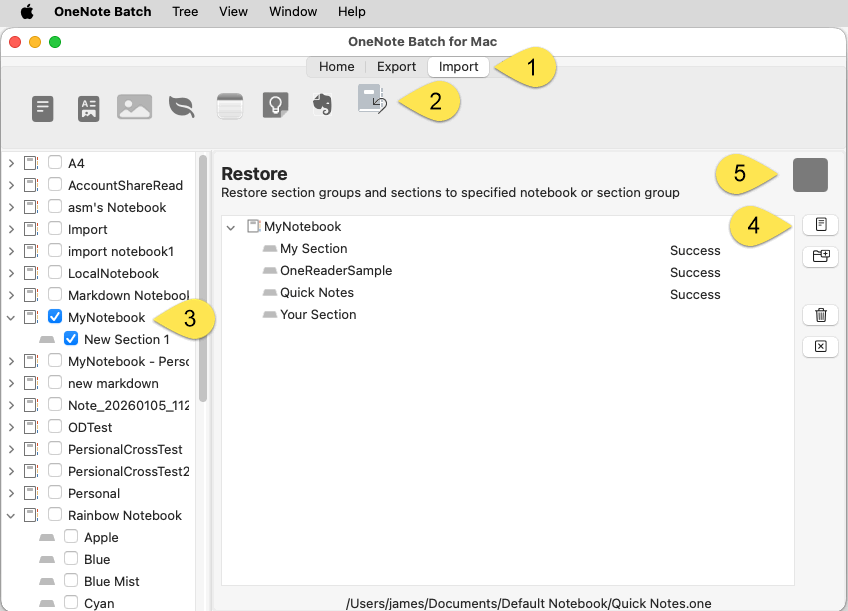 In OneNote Batch for Mac:- Click “Import” tab
