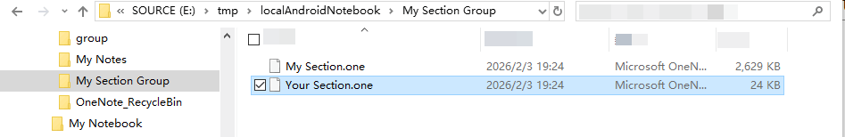 Exits 2 .one files:- My Section.one